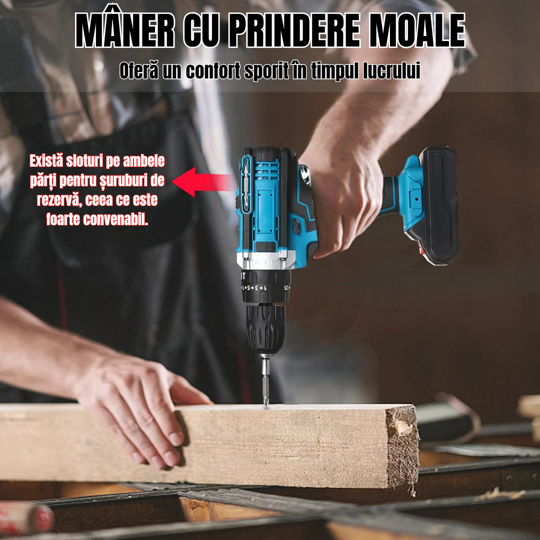 DrillMaster | Bormașină Electrică cu Impact și Baterie (Kit complet german)